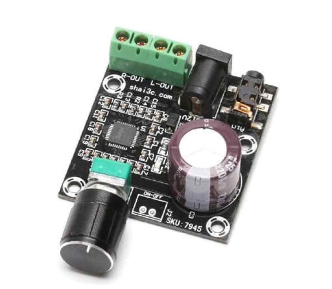 El modulo de amplificación de audio estéreo PAM8610 con potenciómetro al ser Clase D tiene una eficiencia del 90% ofrece una baja distorsión (˂ 0.1%), baja EMI, y por lo tanto buena reproducción de sonido de alta calidad. El control de volumen de 32 pasos tiene un rango de + 32dB a -75dB.